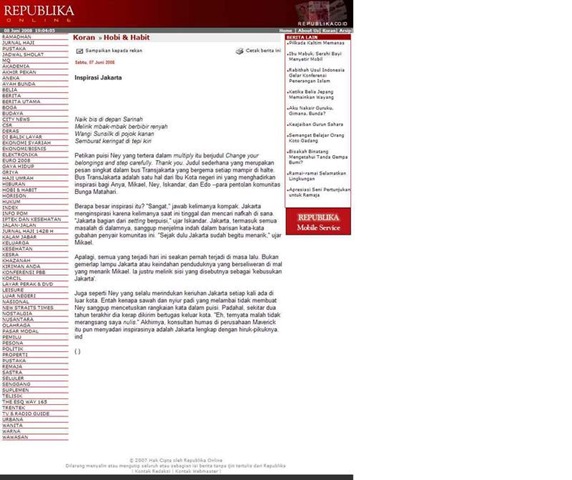 Despite her love of anarchic cyberspace, Anya, along with her friends, is also venturing into print media. She is currently setting up a publishing company called IrisPustaka. The Company’s debut book will be Anya’s anthology of poetry titled “Kota ini Kembang Api” (The City is Fireworks).