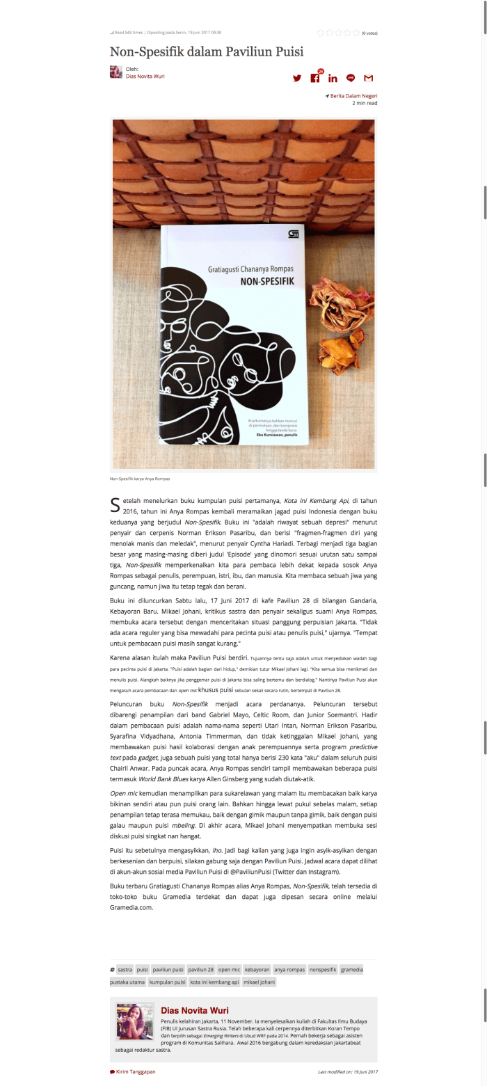 Non-Spesifik dalam Paviliun Puisi