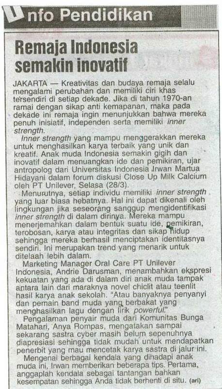Sementara itu Antropolog dari Universitas Indonesia, Irwan Matua Hidayani, mengatakan inner strength anak muda Indonesia terlihat dari pesatnya perkembangan insdutri yang melibatkan mereka.