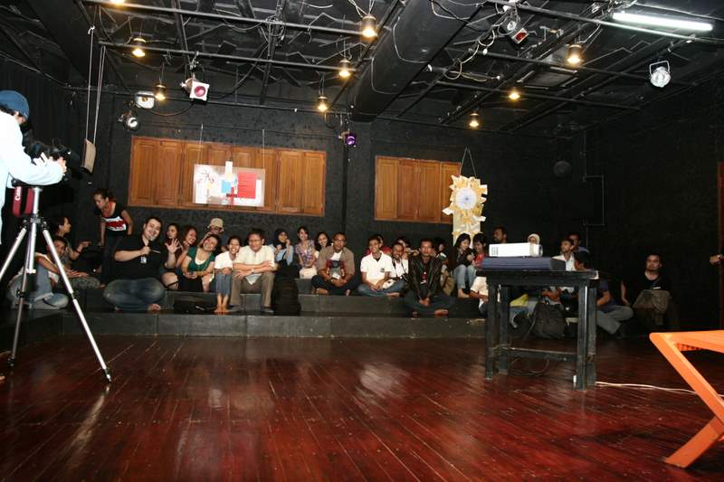 Waktu BuMa jadi penyelenggara sekaligus peserta “Komunitas Maya Bisa Apa?” di Teater Utan Kayu, semua dag dig dug karena ini pertama kali bikin acara di markas komunitas yang jauh lebih senior dan gaungnya sudah ke mana-mana. Crowdnya pasti lebih beragam dengan range yang lebih luas. Strategi penanggulangan chaos dan disorder (which normally was non-existent) harus ditata ulang. Click on thumbnails to see some illustrations of what we accomplished (and several famous faces):